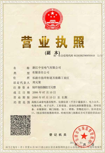 浙江中安电气有限公司是一家集产品研发、生产、销售、服务于一体的企业。公司座落于东海之滨,黄金海岸线中段,海、陆、空交通便利的乐清翁垟工业园区。公司具有电气、电子、计算机、机械、商贸等多元化人才结构。超前的企业管理理念和雄厚的技术实力,造就中安企业飞速发展。