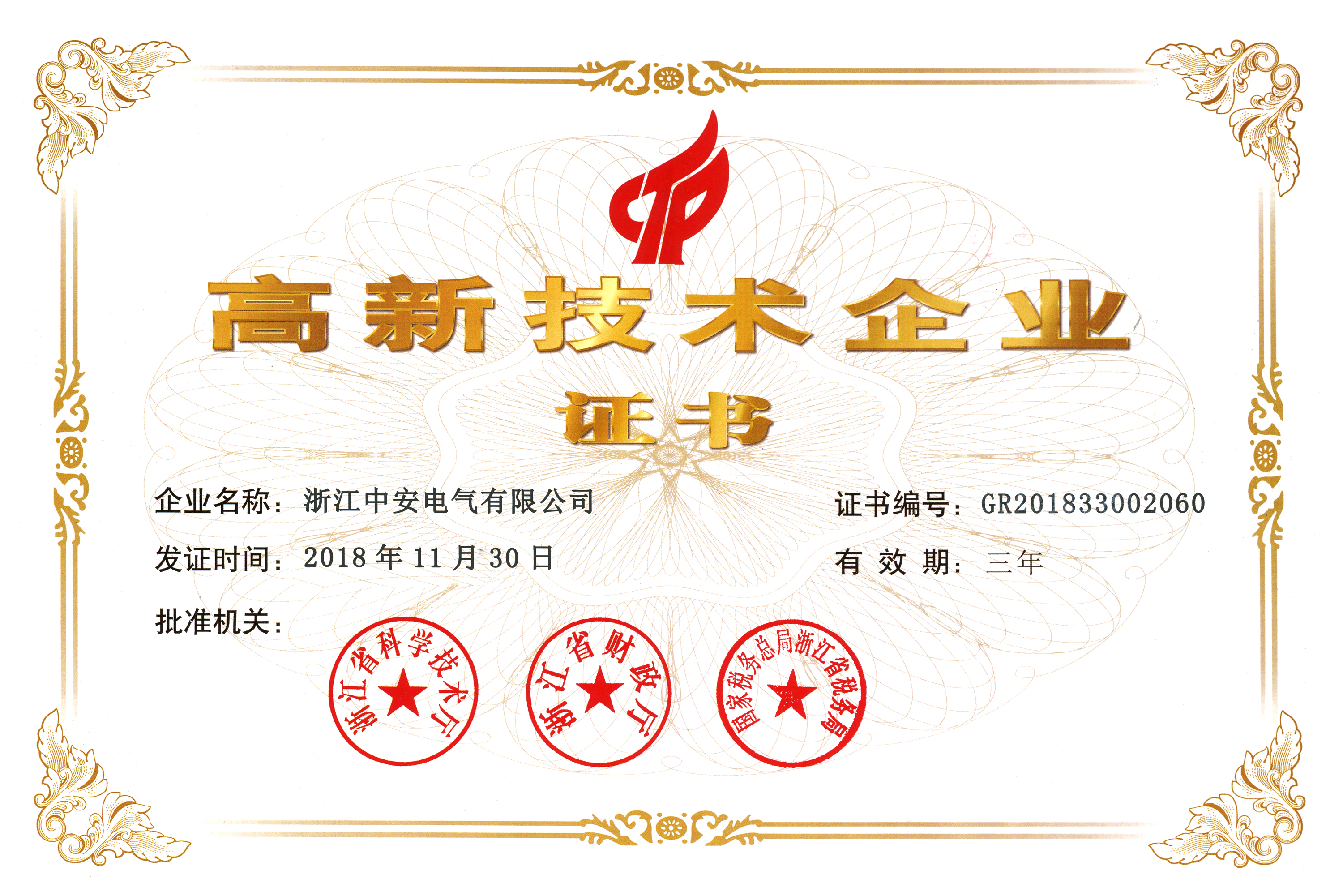 我公司2018年9月份被评定为:国家高新技术企业