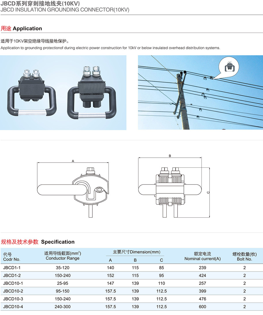 产品名称:JBCD系列穿刺接地线夹(10KV)