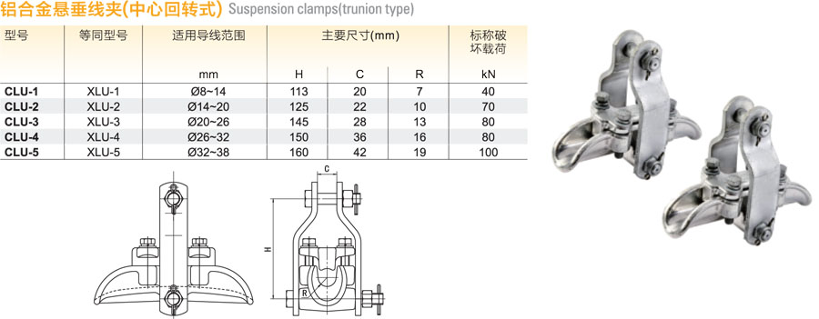 产品名称:铝合金悬垂线夹(中心回旋式)