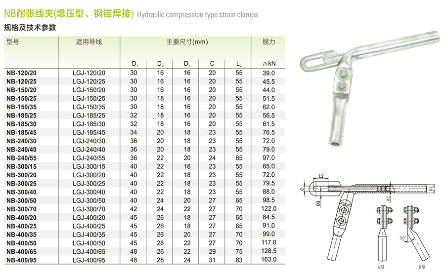 产品名称:NB耐张线夹(爆压型、钢锚焊接)