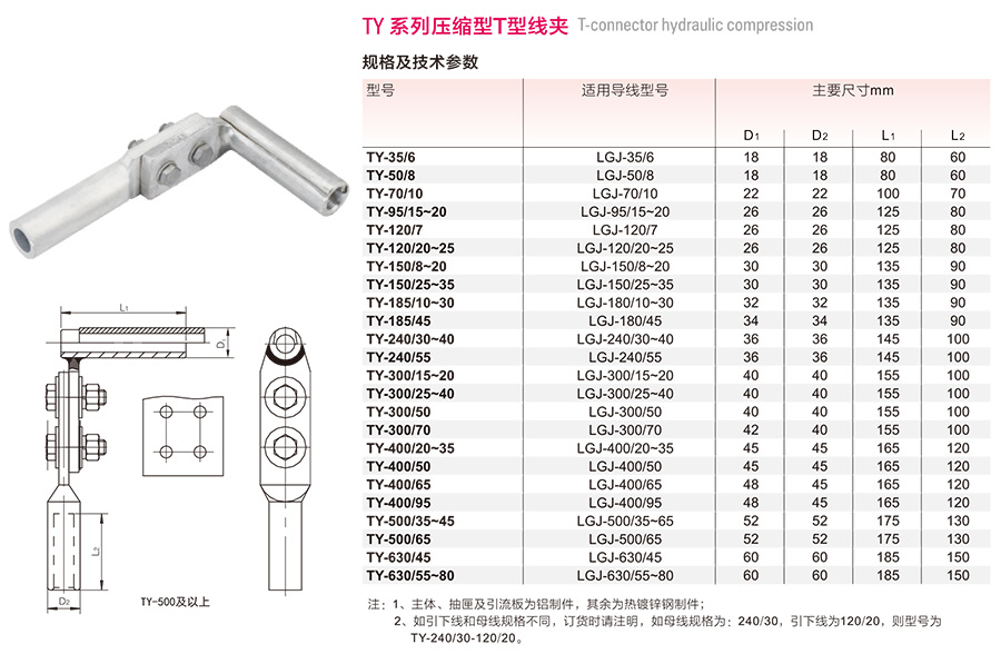 产品名称:TY系列压缩型T型线夹