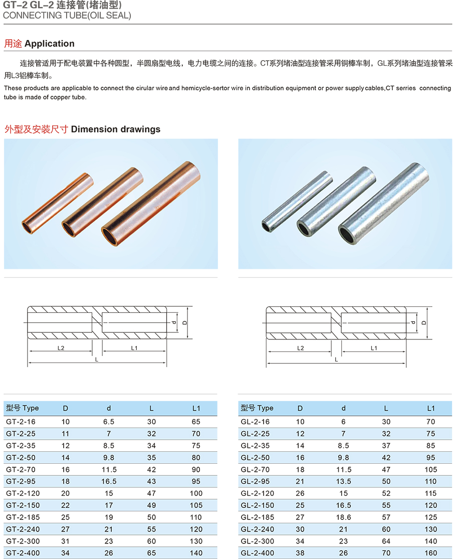 DTL2系列铜铝、DT2系列铜双孔型接线端子