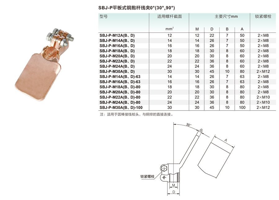 SBJ-P平板式铜抱杆线夹0°(30°,90°)