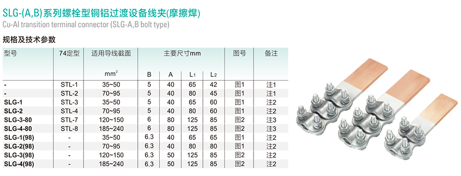 产品名称:SLG-(A,B)系列螺栓型铜铝过渡设备线夹(摩擦焊)