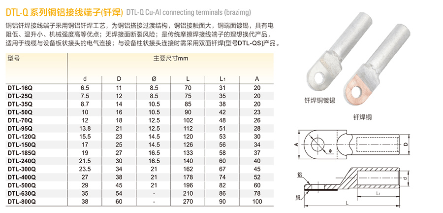 DTL-Q系列铜铝接线端子(钎焊)
