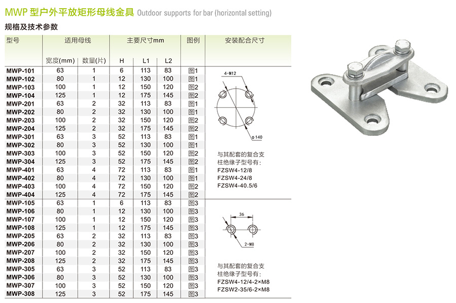MWP户外一片矩形母线固定金具(平放式)