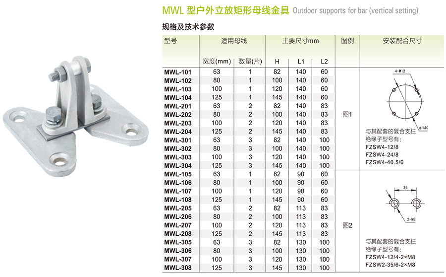 MWL户外一片矩形母线固定金具(立放式)