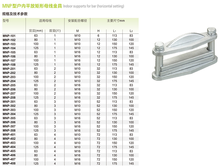 产品名称:MNP型户内平放矩形母线金具