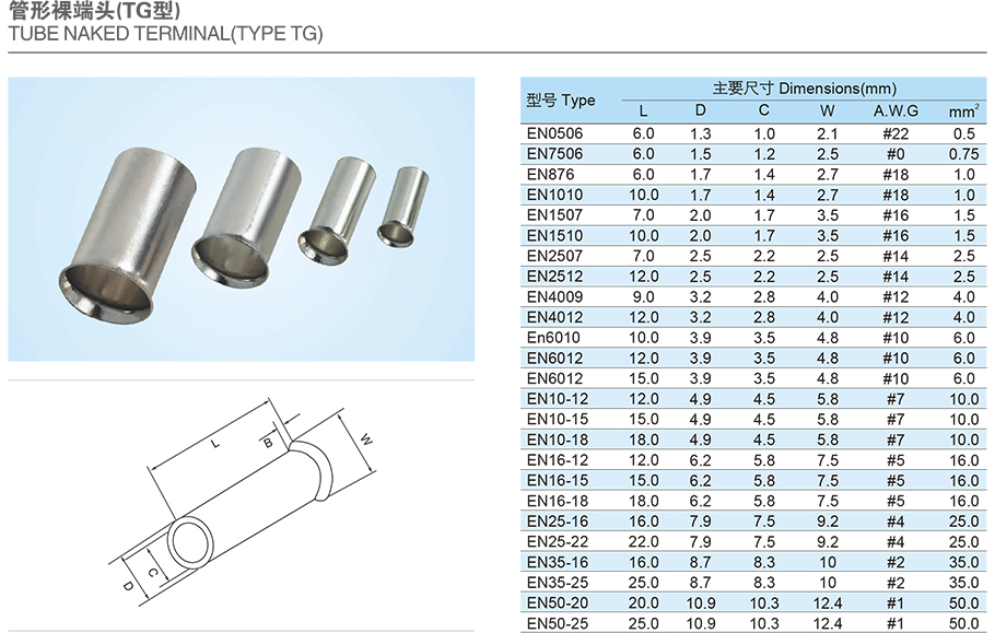 产品名称:管型裸端头(TG型)