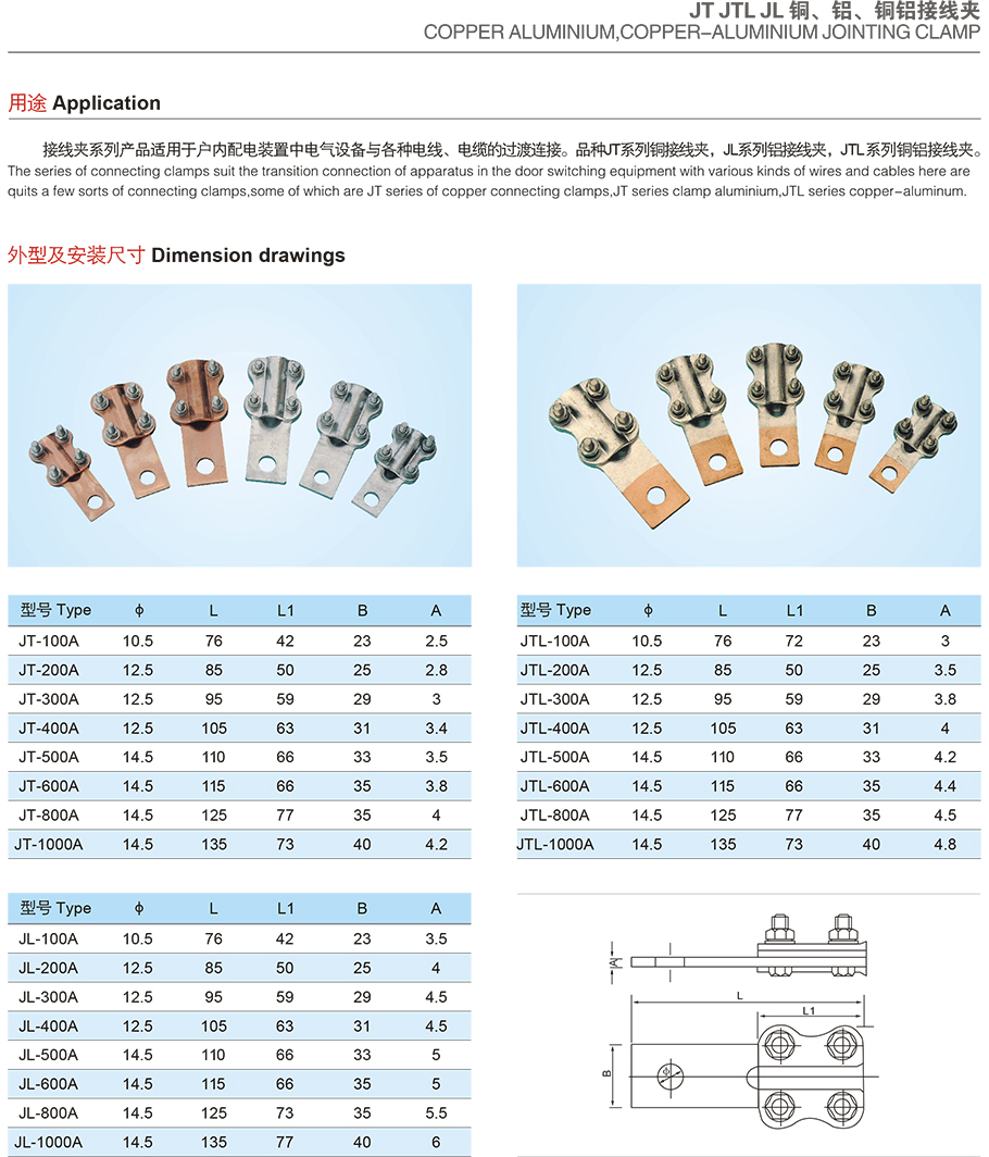 JT JTL JL 铜、铝、铜铝接线夹