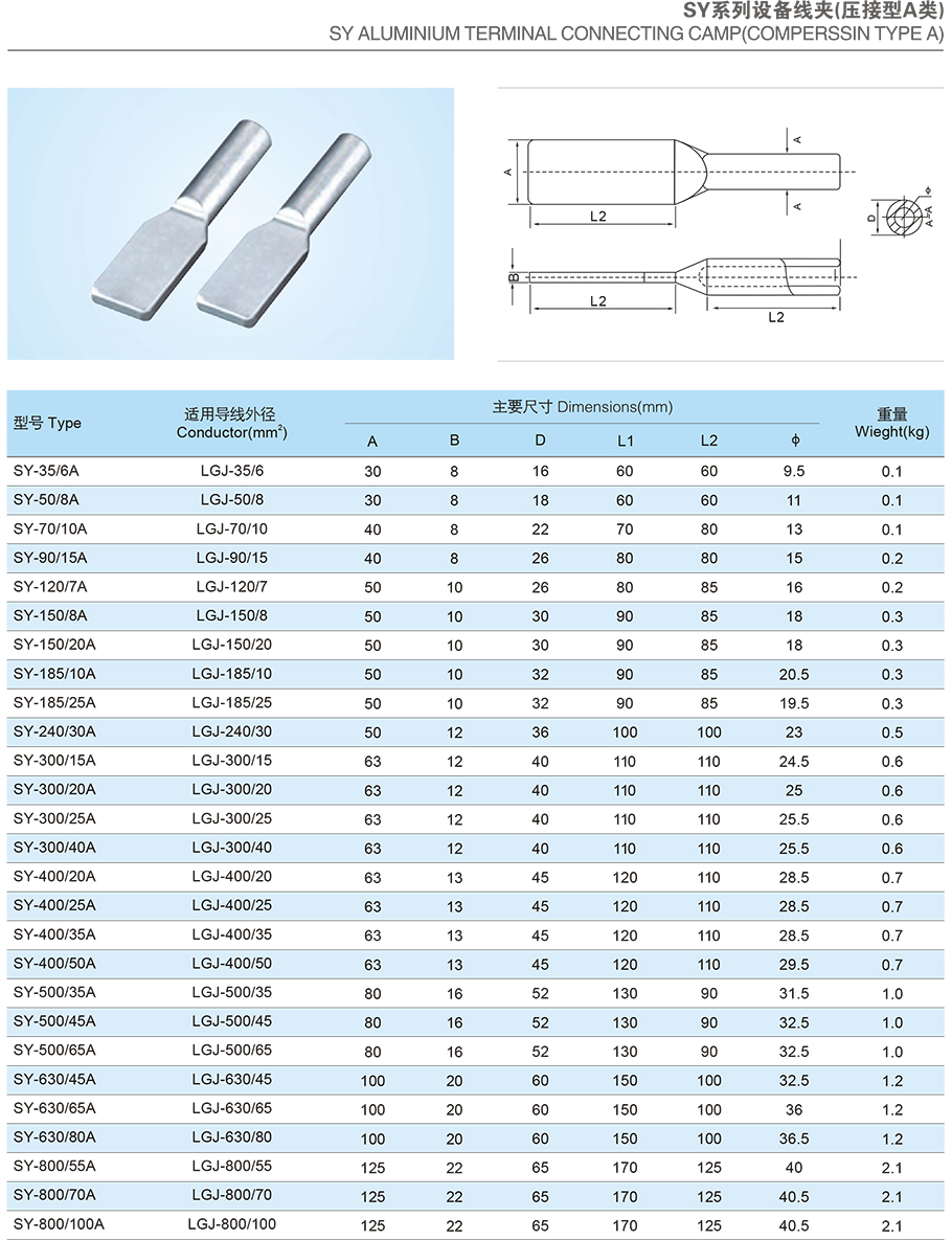SY(T)铜压接型设备线夹(压接型A、B型)