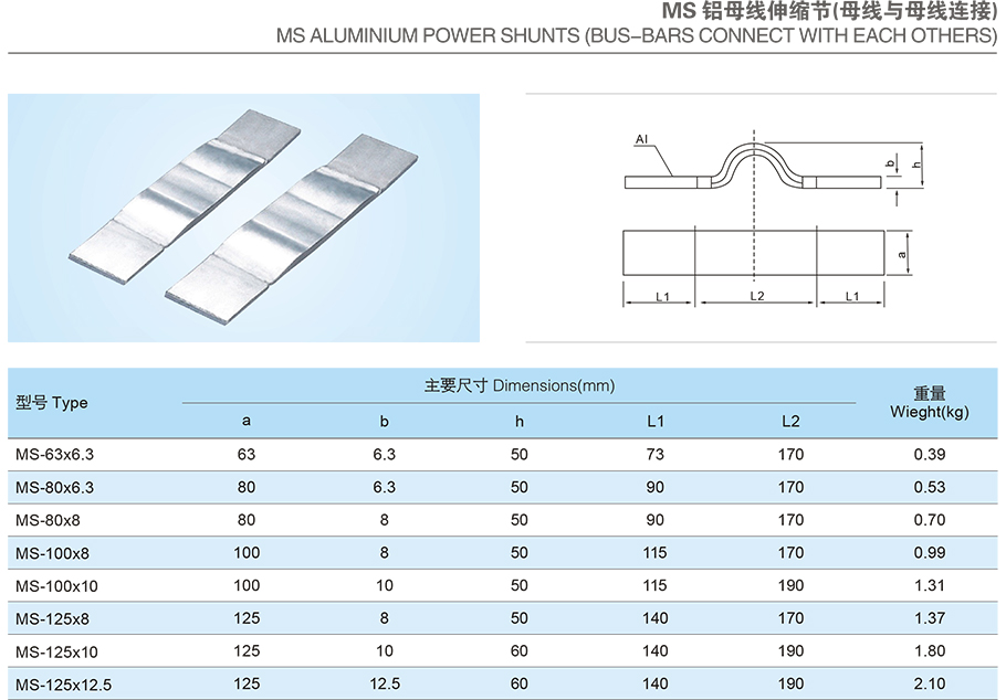 产品名称:MS铝母线伸缩节(母线与母线连接)