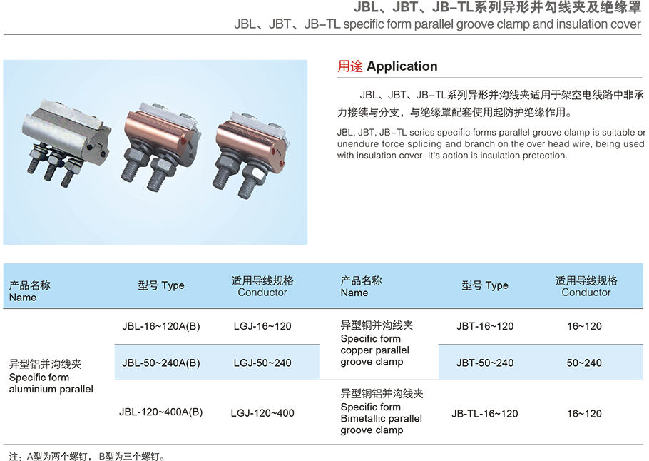 产品名称:JBL、JBT、JB-TL系列异形并勾线夹及绝缘罩