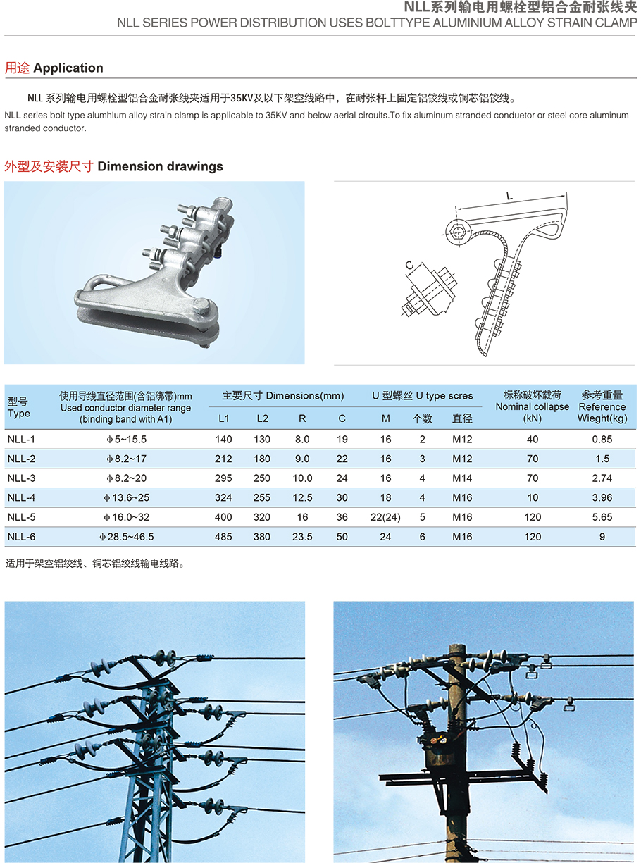 产品名称:NLL系列输电用螺栓型铝合金耐张线夹