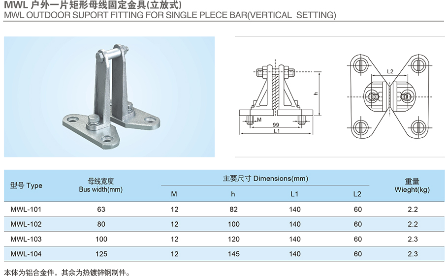 产品名称:MWL户外一片矩形母线固定金具(立放式)
